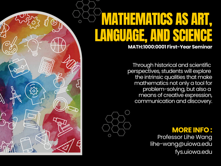 This seminar explores the artistic dimension of mathematical concepts and their visual representations, offering both historical perspectives and insights into the process of their discovery. It highlights the role of mathematics as a universal language that transcends cultural barriers and examines the connections between mathematics and various scientific disciplines. Additionally, it encourages students to think critically, write logically, and visualize scientific concepts in mathematical terms.
